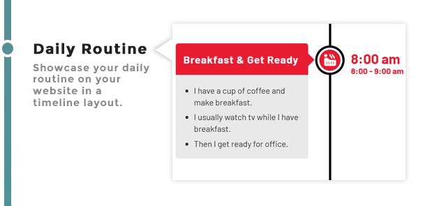 - 时间线中的图标:- FontAwesome 或自定义图像图标 您可以在时间线内的每个故事中显示很棒的字体或自定义图像图标.