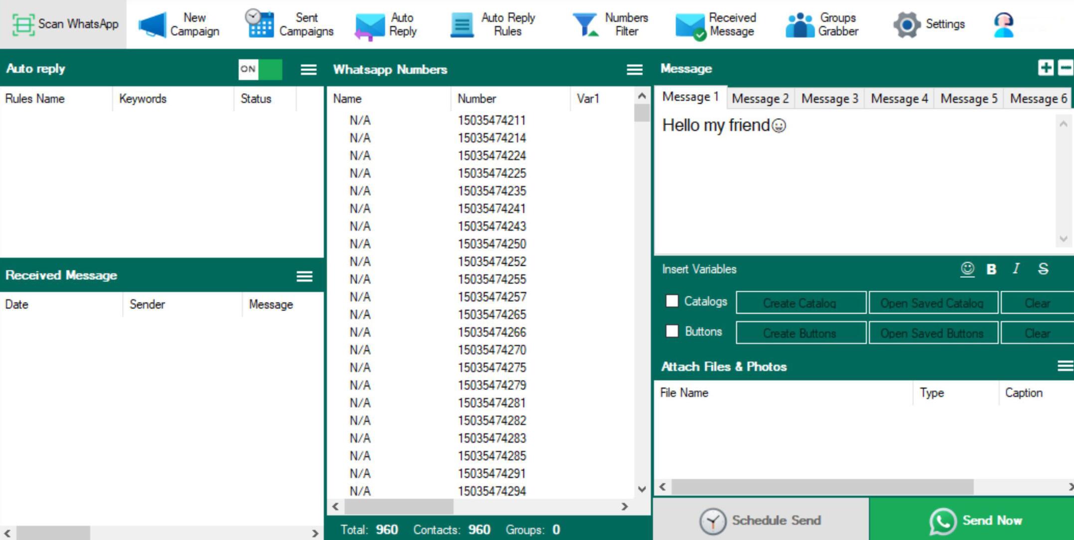 您可以通过该 Whatsapp营销工具 轻松自定义个性化消息, 您可以发送文本, 图片, 视频, 文件以及链接等.